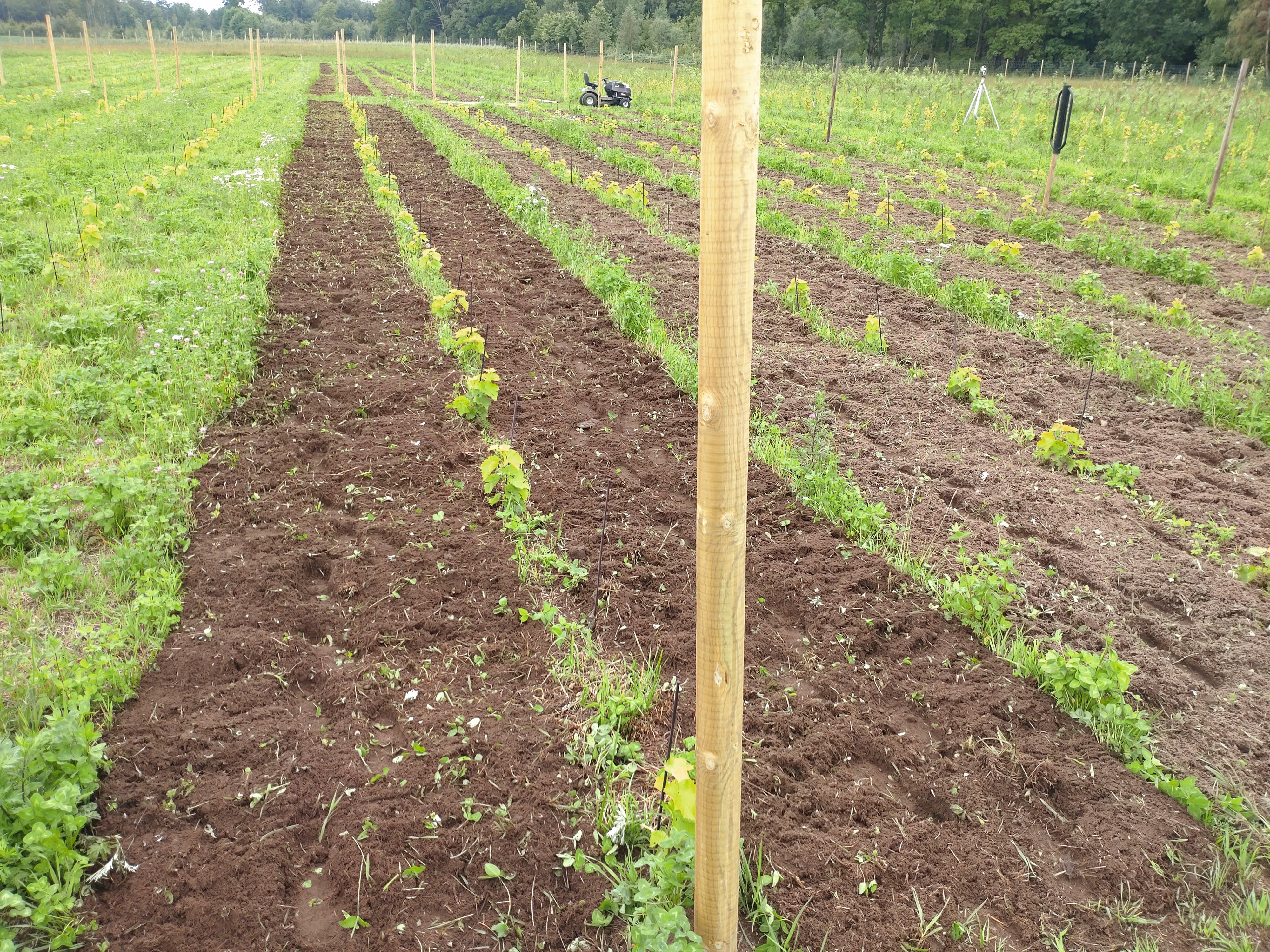 Det er totalt 14 dekar med epler, hvorav 2 dekar ble plantet i 2023, 6 dekar i 2024 og 6 dekar i 2025. Det er totalt 2700 epletrær, og de økologiske eplene er sortene Aroma, Discovery, Bramley's Seedling og Rubinstep. Disse presses i vårt nye sideri og lagres i vinkjelleren! Vi har også 800 solbærbusker og 100 ripsbusker, slik at vi kan lage tradisjonell håndtverkssider med smak av rips og solbær.